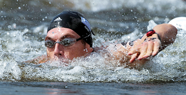 Ο 33χρονος παγκόσμιος πρωταθλητής, που πέρασε στην ιστορία ως ο γηραιότερος που κατακτά χρυσό μετάλλιο, αφιέρωσε τη μεγάλη του επιτυχία στον προπονητή του, στους γονείς του και κυρίως σε όλους τους Ελληνες. Αναφερόμενος στην κούρσα του τόνισε: «Είναι απίστευτο, αλλά αληθινό. Ηταν μια τρελή κούρσα, ιδιαίτερα στα τελευταία δυόμισι χιλιόμετρα. Εκεί κολύμπησα με μυαλό και ψυχή συναισθανόμενος αυτό που είχε συμβεί πέρυσι στους Ολυμπιακούς Αγώνες του Λονδίνου».