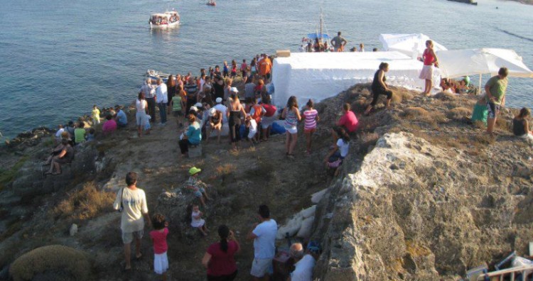 Κατά τη διάρκεια της λειτουργίας οι μανάδες βγάζουν ένα ρούχο που φορούν εκείνη την ώρα τα παιδιά τους και το τοποθετούν, σύμφωνα με το έθιμο, σε μια τρύπα στην ανατολική πλευρά του βράχου για να το πάρει μακριά ο άνεμος και μαζί του τις αρρώστιες. Το τελετουργικό ολοκληρώνεται με το προσκύνημα της εικόνας. Στην επιστροφή στήνεται πανηγύρι στο λιμάνι του Μώλου και το γλέντι με παραδοσιακά τραγούδια κρατά πολλές ώρες.
