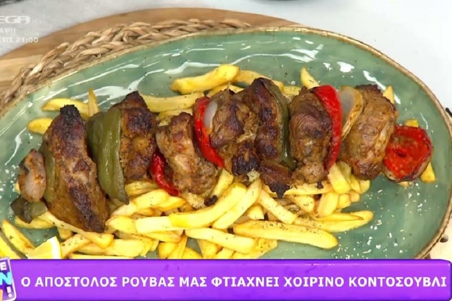 Ο σεφ της εκπομπής «Πάμε Δανάη», Απόστολος Ρουβάς, έφτιαξε χοιρινό κοντοσούβλι, με τηγανιτές πατάτες.