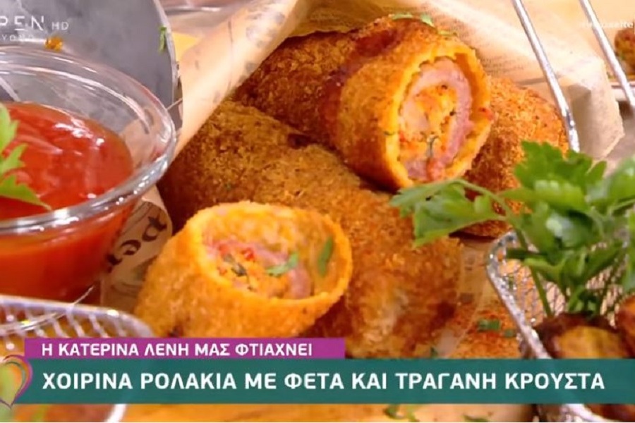Η Κατερίνα Λένη έφτιαξε στην εκπομπή «Ευτυχείτε» χοιρινά ρολάκια με φέτα και τραγανή κρούστα.