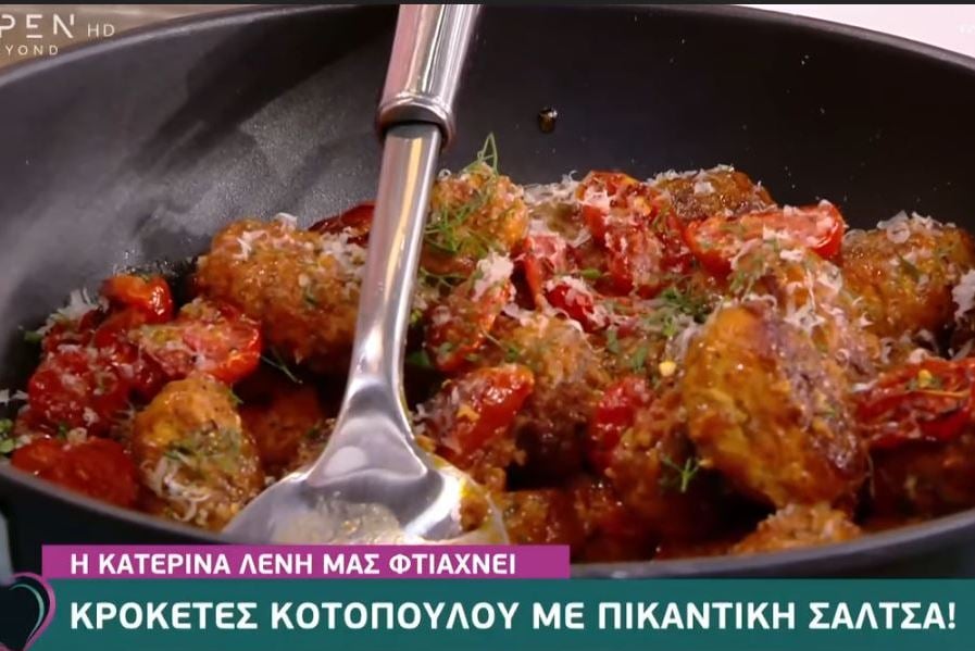 Κροκέτες κοτόπουλου με πικάντικη σάλτσα έφτιαξε η Κατερίνα Λένη στην εκπομπή «Ευτυχείτε».