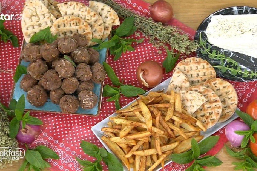Ο Σταύρος Βαρθαλίτης έφτιαξε στην κουζίνα της εκπομπής «Breakfast@star» κεφτεδάκια με τηγανιτές πατάτες.