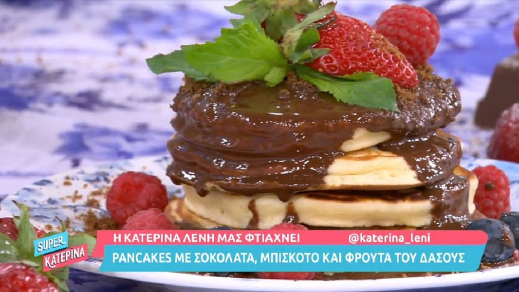 Η Κατερίνα Λένη έφτιαξε στην εκπομπή «Super Κατερίνα» pancakes με σοκολάτα, μπισκότο και φρούτα του δάσους.