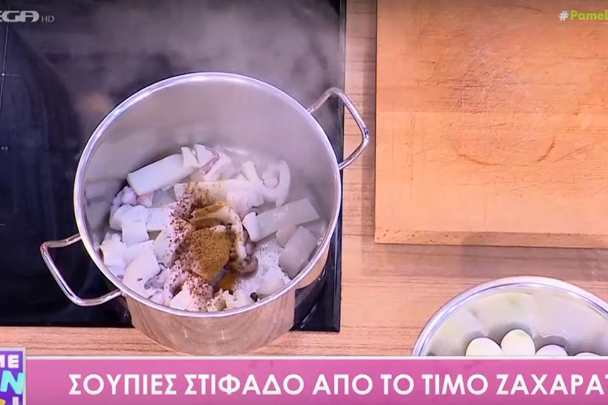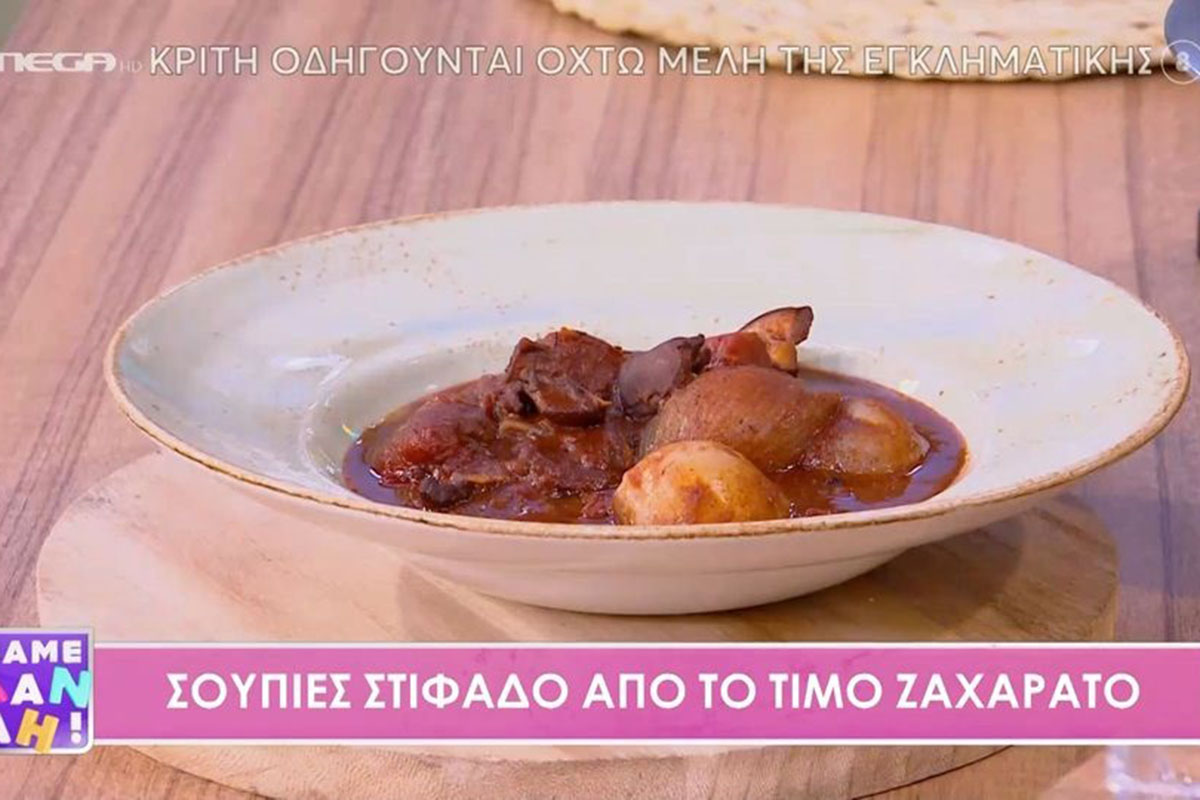 Ο Τίμος Ζαχαράτος ετοίμασε στην κουζίνα της εκπομπής «Πάμε Δανάη» σουπιές στιφάδο και σας προτείνει να κάνετε τη συνταγή του.