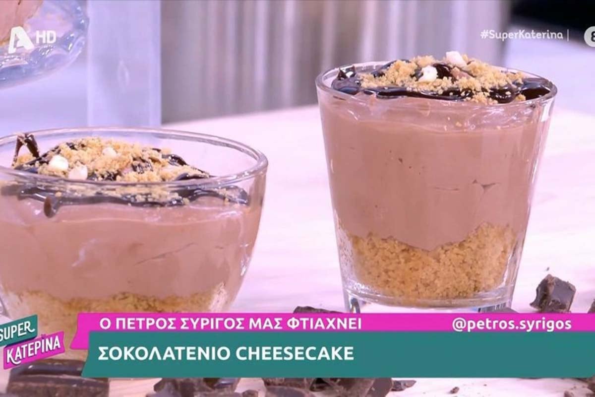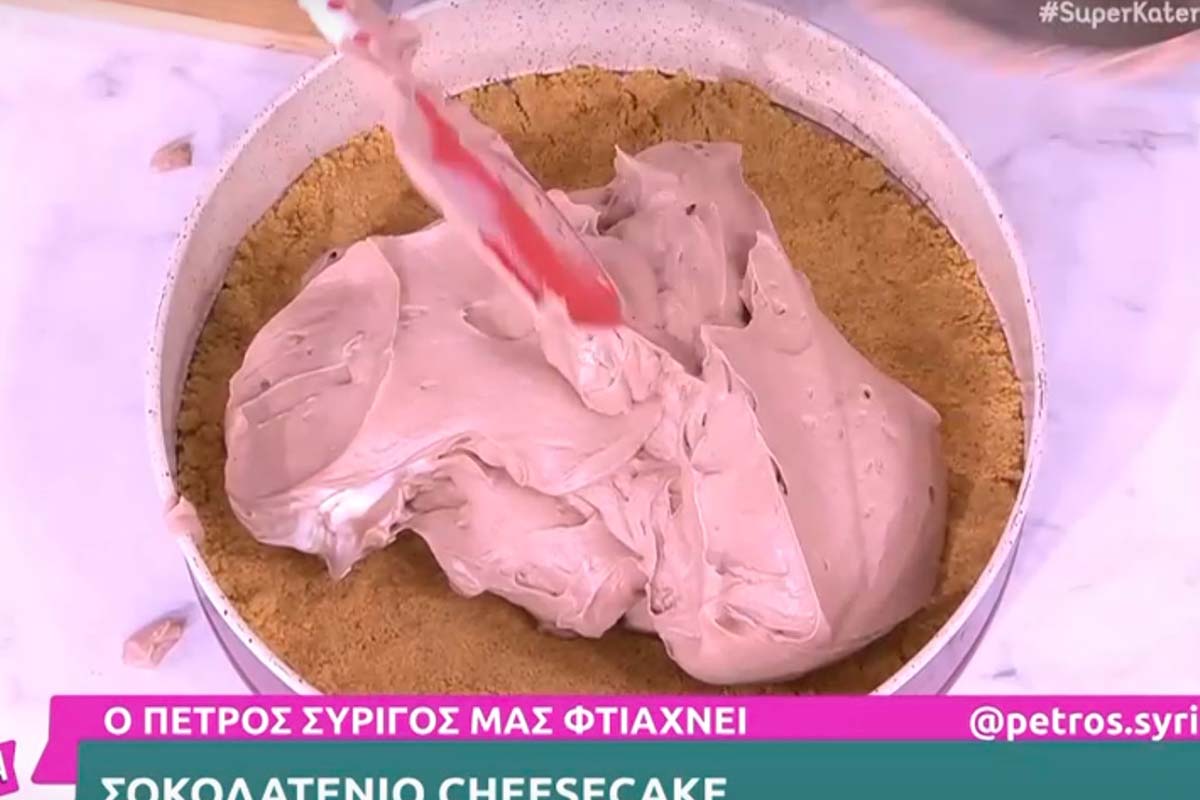Σοκολατένιο cheesecake έφτιαξε ο Πέτρος Συρίγος στην κουζίνα της εκπομπής «Super Κατερίνα» και σας προτείνει να κάνετε τη συνταγή του.