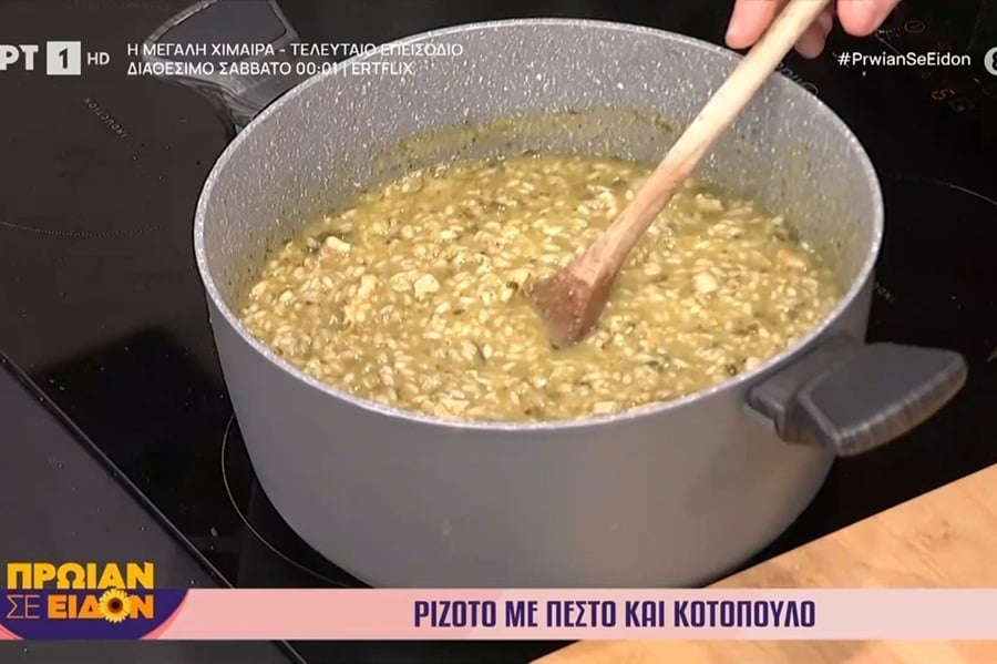 Ριζότο με πέστο και κοτόπουλο έφτιαξε στην κουζίνα της εκπομπής «Πρωίαν σε είδον» η Γωγώ Δελογιάννη.