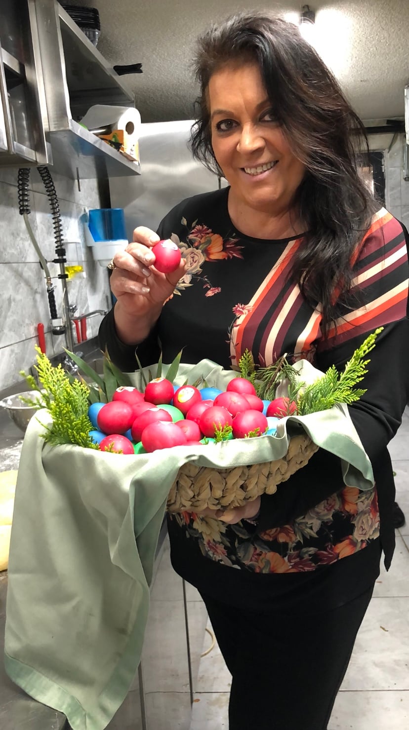 Το Μεγάλο Σάββατο, την τιμητική της έχει η μαγειρίτσα – από τα πιο μυρωδικά φαγητά για εμένα. Τη μαγείρευα στο μαγαζί μου και περνούσε από εκεί όλη η ελληνική κοινότητα. Είμαι διάσημη για τη μαγειρίτσα μου. Επίσης, φτιάχνουμε και ένα πολίτικο φαγητό, τα σαρμαδάκια, τα τυλιχτά εντεράκια σαν πλεξούδα, με βουτυράκι, κρεμμυδάκι και άνηθο. Ονειρεμένο φαγητό! Η μαμά μου έκανε και τις σπλήνες τις γεμιστές. Ανοιγε τη σπλήνα, της έβαζε ένα μείγμα από ρύζι, κρεμμύδι, άνηθο, κουκουνάρι και σταφίδες, και μετά την έραβε και τη φούρνιζε. Την τεμάχιζε την επόμενη μέρα και τη σοτάριζε με βούτυρο».