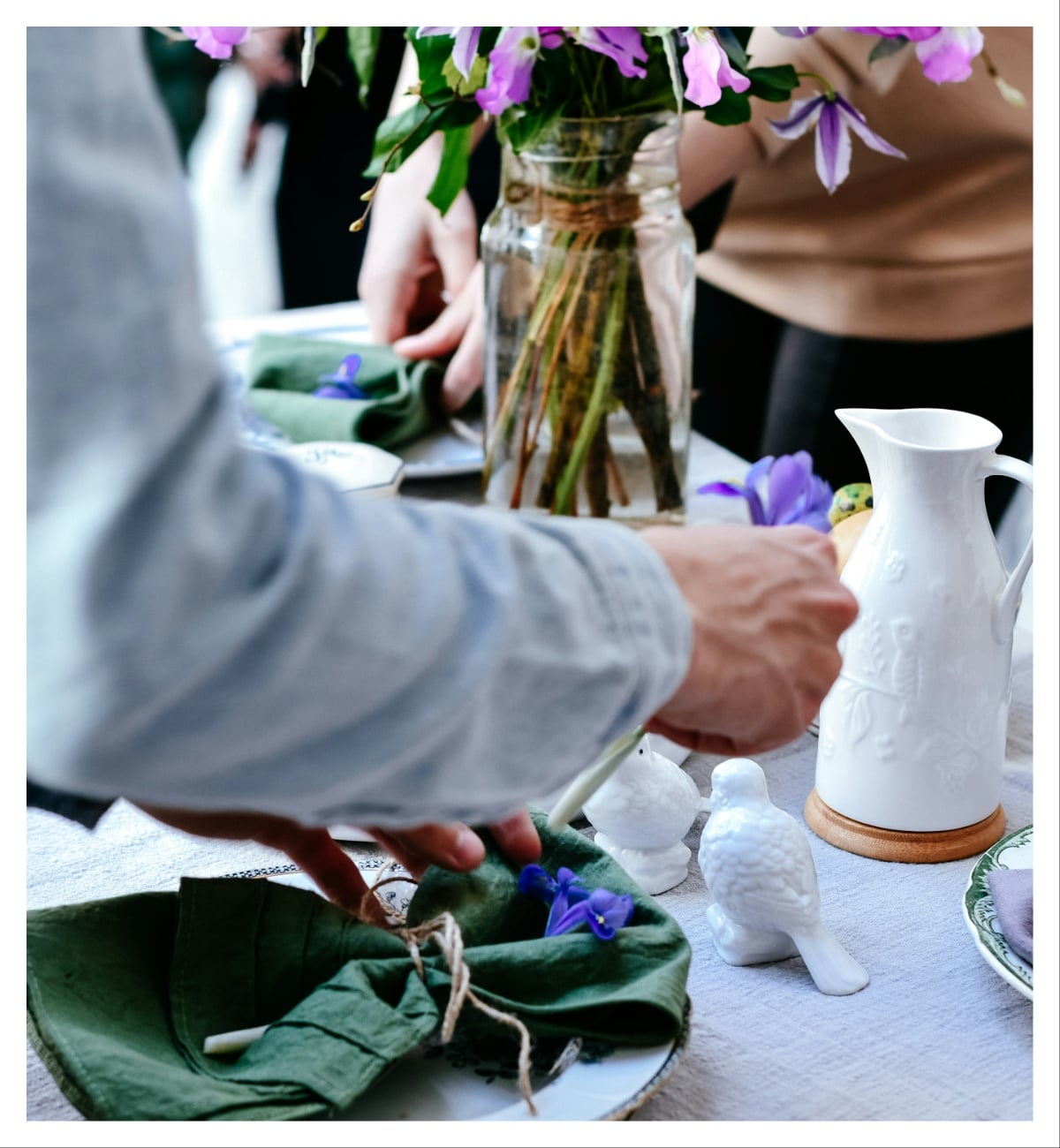 Επιλέξτε το σωστό τραπεζομάντιλο και διακόσμηση: Η βάση κάθε όμορφου τραπεζιού είναι το τραπεζομάντιλο. Προτιμήστε λευκό ή παστέλ αποχρώσεις, οι οποίες φέρνουν φρεσκάδα και ανοιξιάτικη αίσθηση. Για να δώσετε ακόμα πιο γιορτινή αίσθηση στο τραπέζι, μπορείτε να προσθέσετε Πασχαλινά αυγά σε έντονα χρώματα ή βαμμένα με φυσικές βαφές, κεριά σε μικρές βάσεις για ζεστή ατμόσφαιρα ή ακόμα και λουλούδια εποχής, όπως τουλίπες ή ανεμώνες, σε μικρά βάζα στο κέντρο του τραπεζιού. Μη ξεχνάτε πως χρώματα όπως κόκκινο, πράσινο, κίτρινο και λευκό δίνουν ανοιξιάτικη και γιορτινή ατμόσφαιρα.