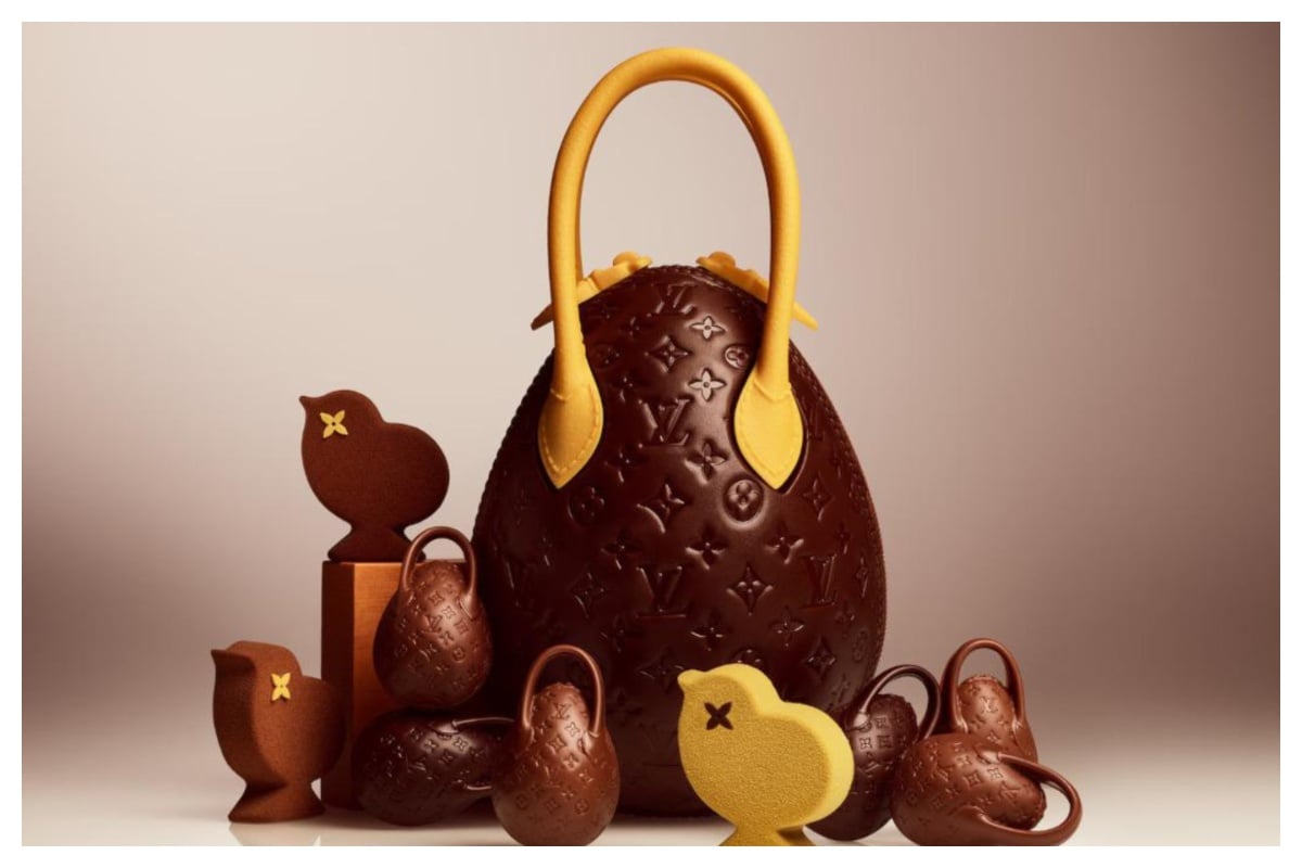 Σοκολατένια τσάντα-αυγό Louis Vuitton: Ένα πραγματικό αριστούργημα από μαύρη και λευκή σοκολάτα, με σοκολάτα γάλακτος στο εσωτερικό, γεμάτη ρευστή πραλίνα φουντουκιού και καραμέλα λεμόνι. Συνοδεύεται από καβουρδισμένους ξηρούς καρπούς, ζαχαρωμένα φρούτα, χειροποίητη πραλίνα και κοστίζει 250 ευρώ.
