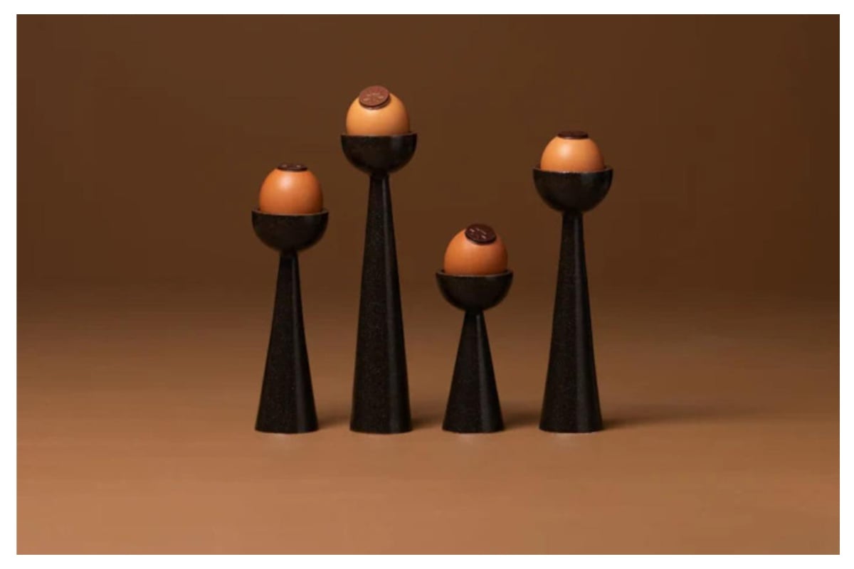 Το αυγό στο παλαιότερο σοκολατάδικο του Παρισιού: Αυγά εμπνευσμένα από παραδοσιακά διακοσμητικά που μοιάζουν με κηροπήγια, διαθέσιμα σε μαύρη, γάλακτος ή λευκή σοκολάτα. Η συνεργασία του ιστορικού καταστήματος «À la mère de famille» με τον Jacques Monneraud προσφέρει αυγά με τιμές από 21 έως 80 ευρώ, ανάλογα με το μέγεθος.