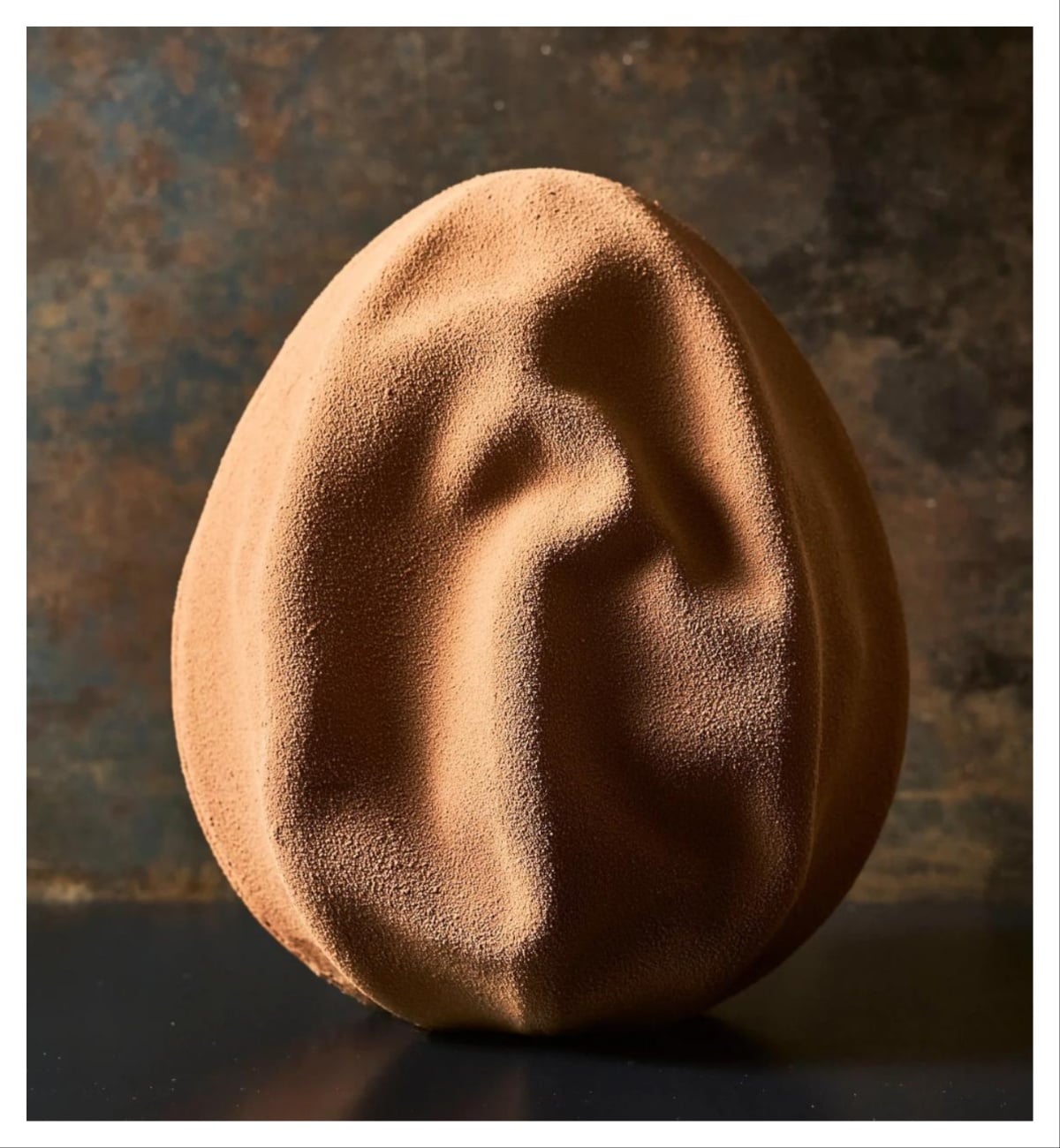 Το αυγό «Plissé» του Jeffrey Cagnes: Με μέγεθος XL, κατασκευασμένο από εκλεκτή μαύρη σοκολάτα ή σοκολάτα γάλακτος, γεμισμένο με πραλίνα φουντουκιού 70% και θρυμματισμένα φουντούκια με την τιμή του να ανέρχεται στα 90 ευρώ.