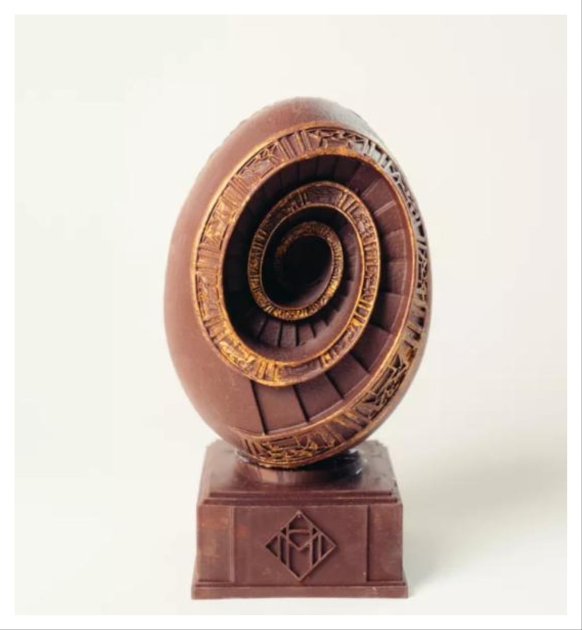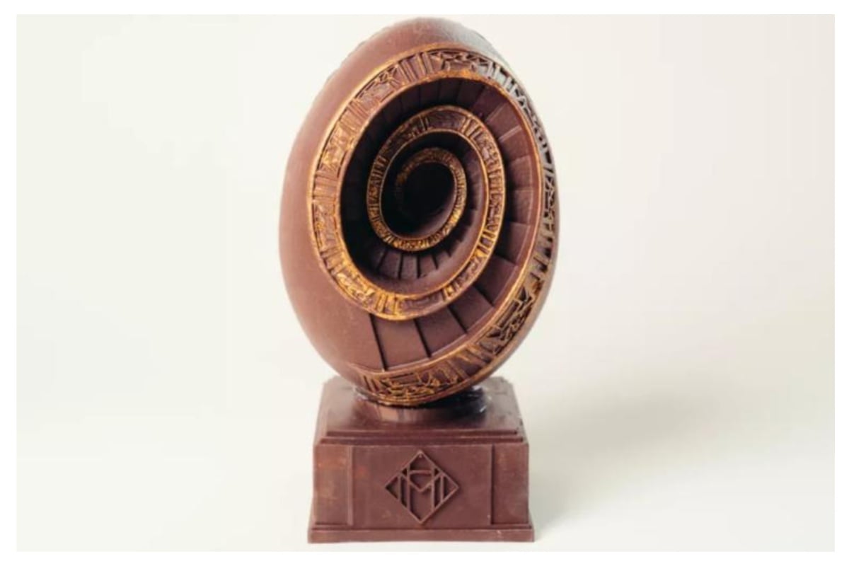 Η σκάλα στο αυγό που σε ζαλίζει: Ένα εντυπωσιακό αυγό σε σχήμα παλιάς σκάλας, φτιαγμένο από εκλεκτή μαύρη και γάλακτος σοκολάτα. Η γεύση του ολοκληρώνεται με αμύγδαλα από την Προβηγκία και λεπτές νότες άνθεων πορτοκαλιάς, προσφέροντας μια αυθεντική εμπειρία μεσογειακής γαλλικής γεύσης. Το πολυτελές αυγό κοστίζει 60 ευρώ.