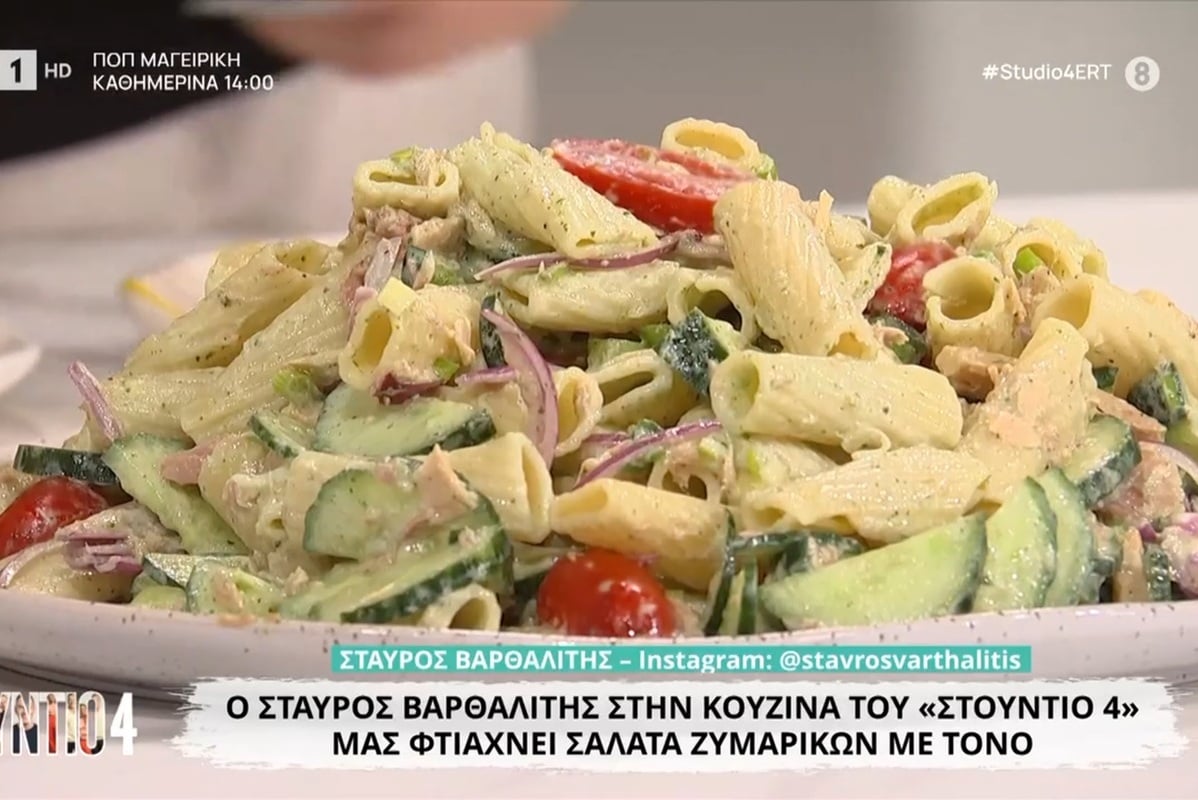 Ο Σταύρος Βαρθαλίτης έφτιαξε σαλάτα ζυμαρικών με τόνο στην κουζίνα της εκπομπής «Στούντιο 4».