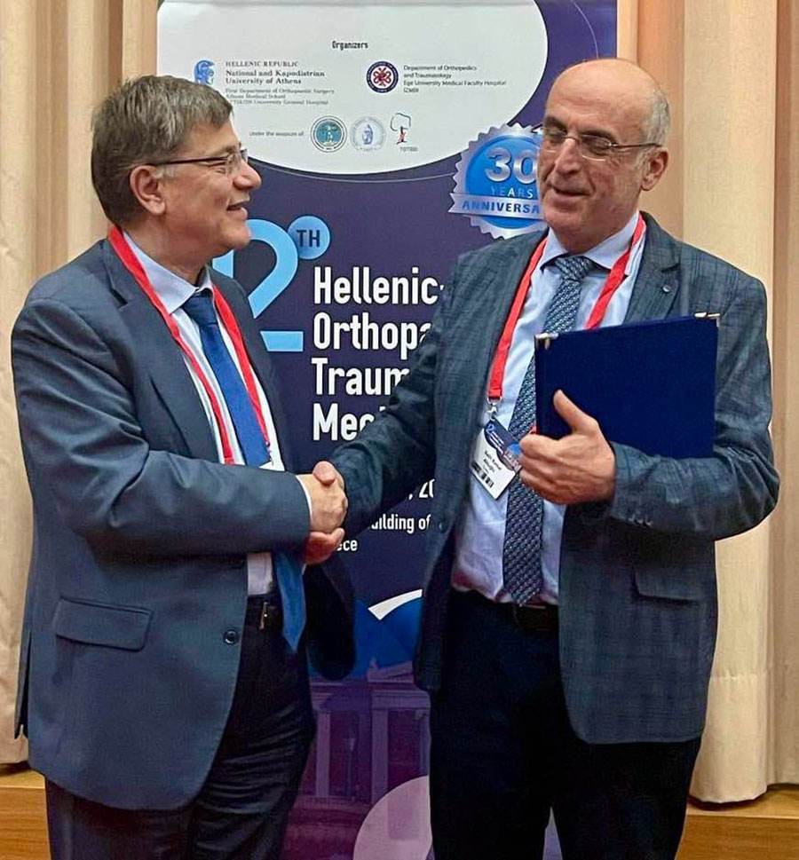 Ο Παναγιώτης Παπαγγελόπουλος Καθηγητής-Διευθυντής της Α’ Πανεπιστημιακής Ορθοπαιδικής Κλινικής, ΕΚΠΑ, ΠΓΝ ΑΤΤΙΚΟΝ με τον Καθηγητή -Διευθυντή της Πανεπιστημιακής Ορθοπαιδικής Κλινικής Σμύρνης, κ. Kemal Aktuglu